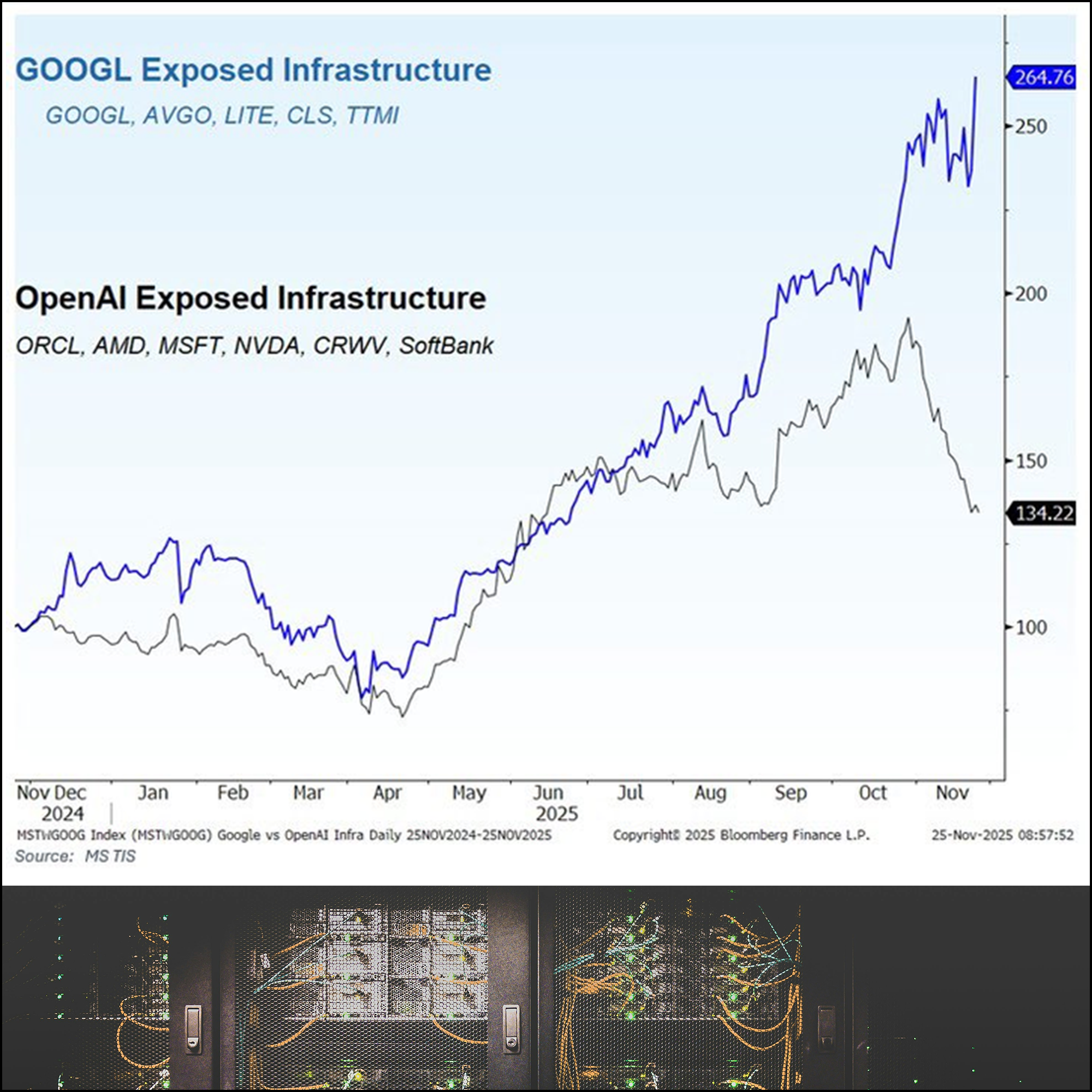 AI stocks linked to OpenAI are rallying in a reversal of recent trends. The AI pendulum appears to be swinging back in the other direction, at least for one day. (Via Luke Kawa, Sherwood News).