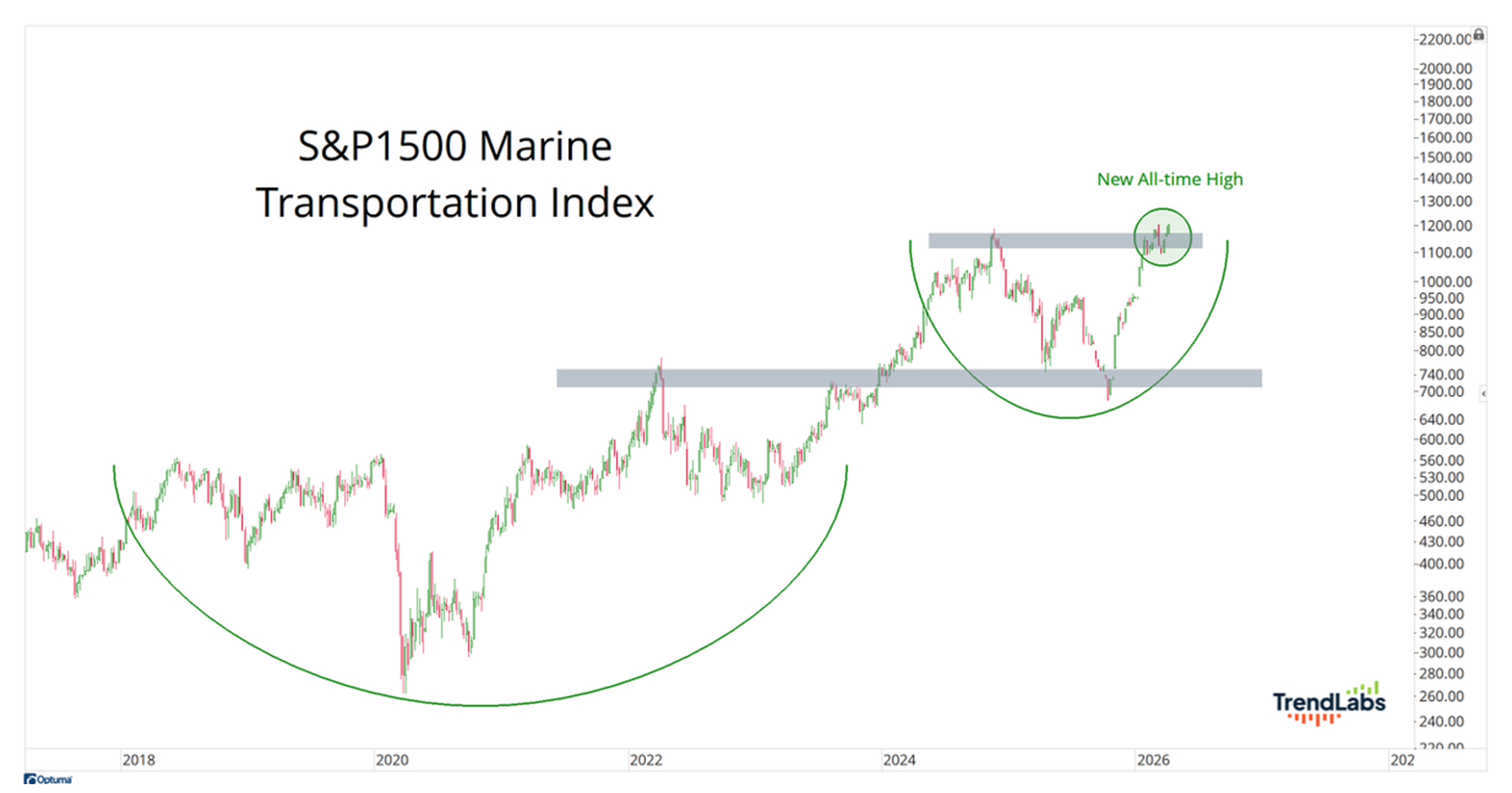 J.C. Parets, Founder of TrendLabs, says, “Marine shippers are probably closing at new all-time highs because no one is moving anything around, and a recession.”